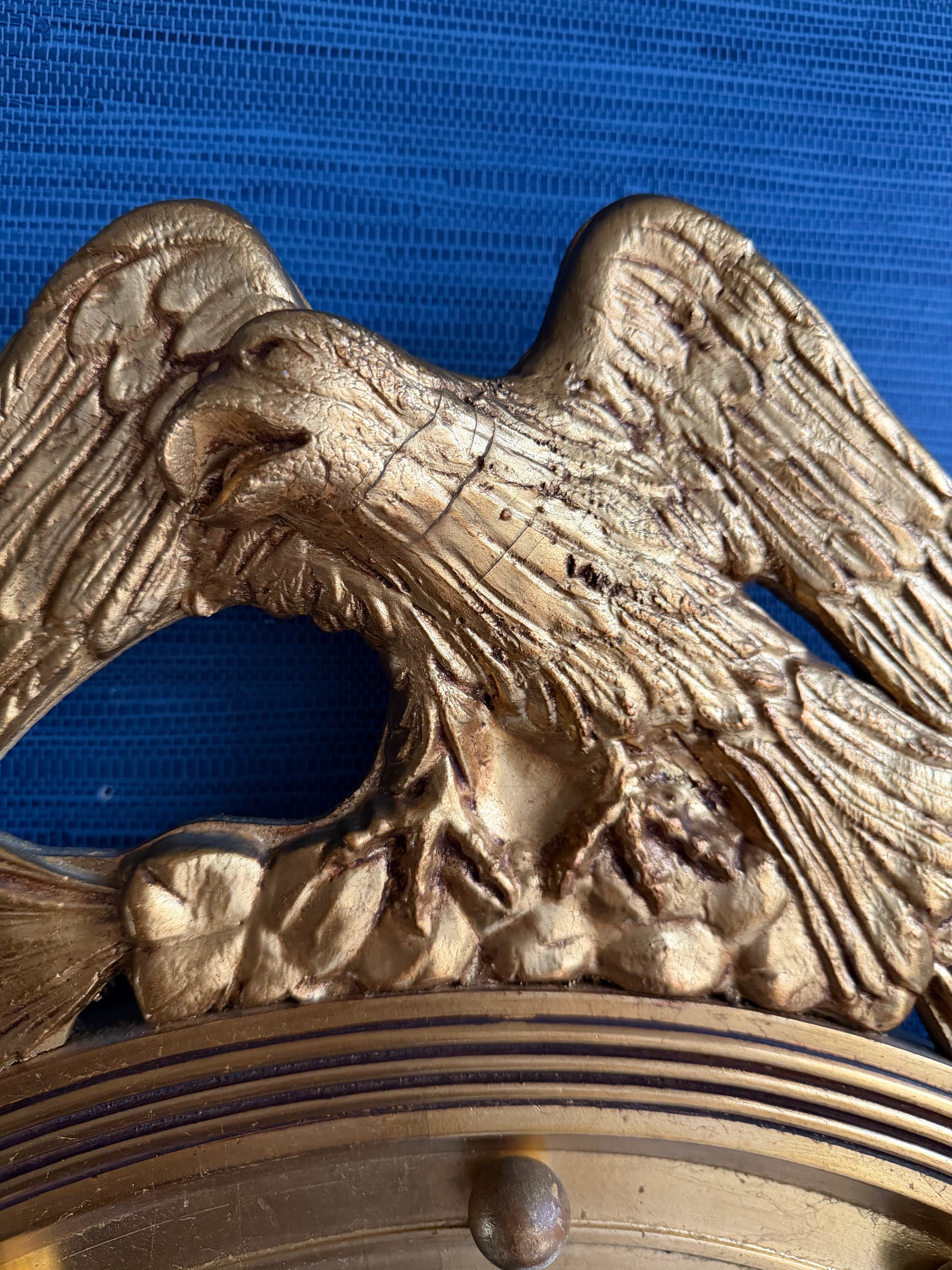 Vintage Colonial Revival Federal Eagle Round Convex Giltwood Mirror — Made in America by AJ Olson Co. (Mississippi), 20th Century