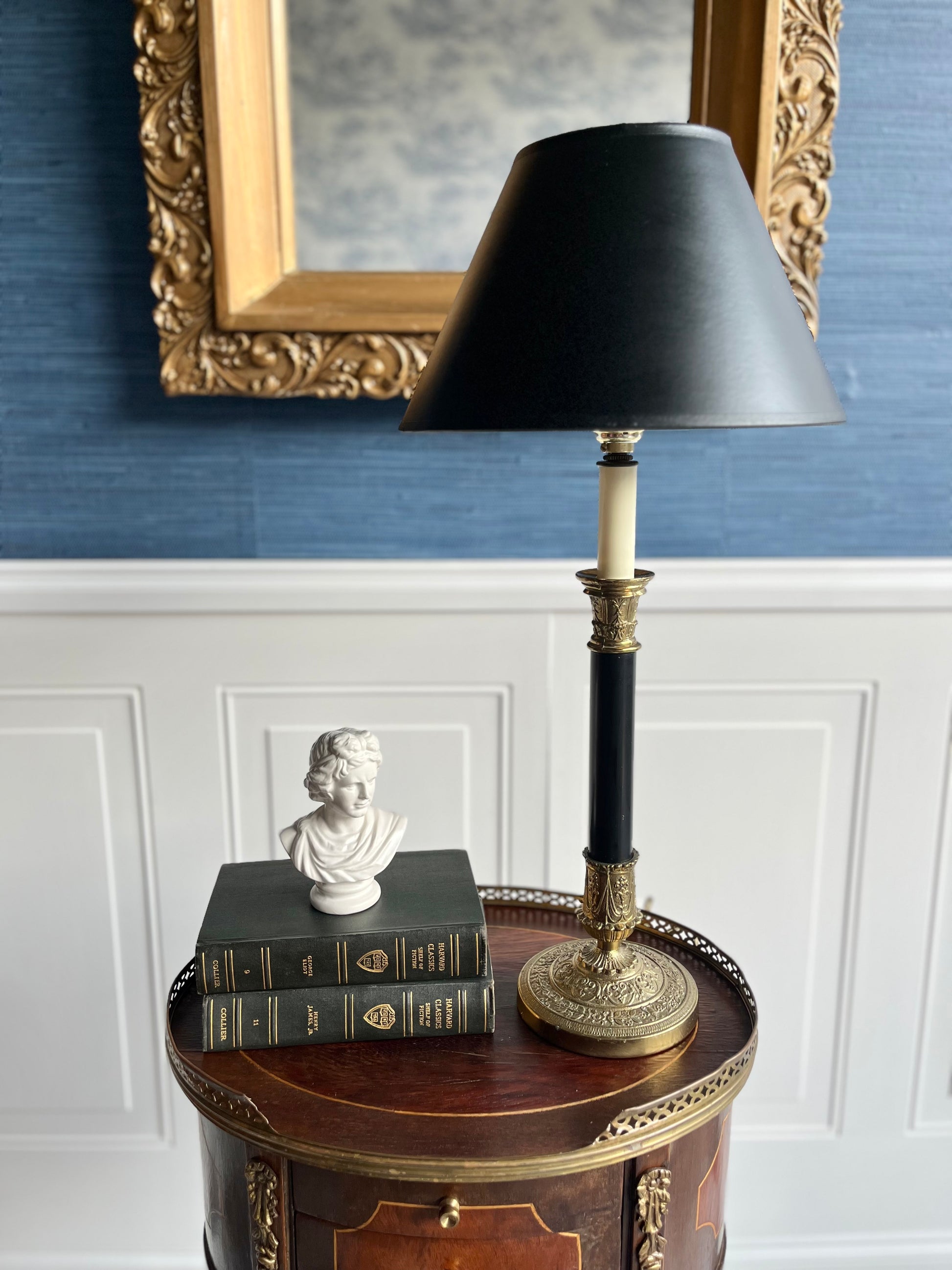 Vintage French Bouillotte-Style Table Lamp – Black Shade & Ornate Neoclassical Base