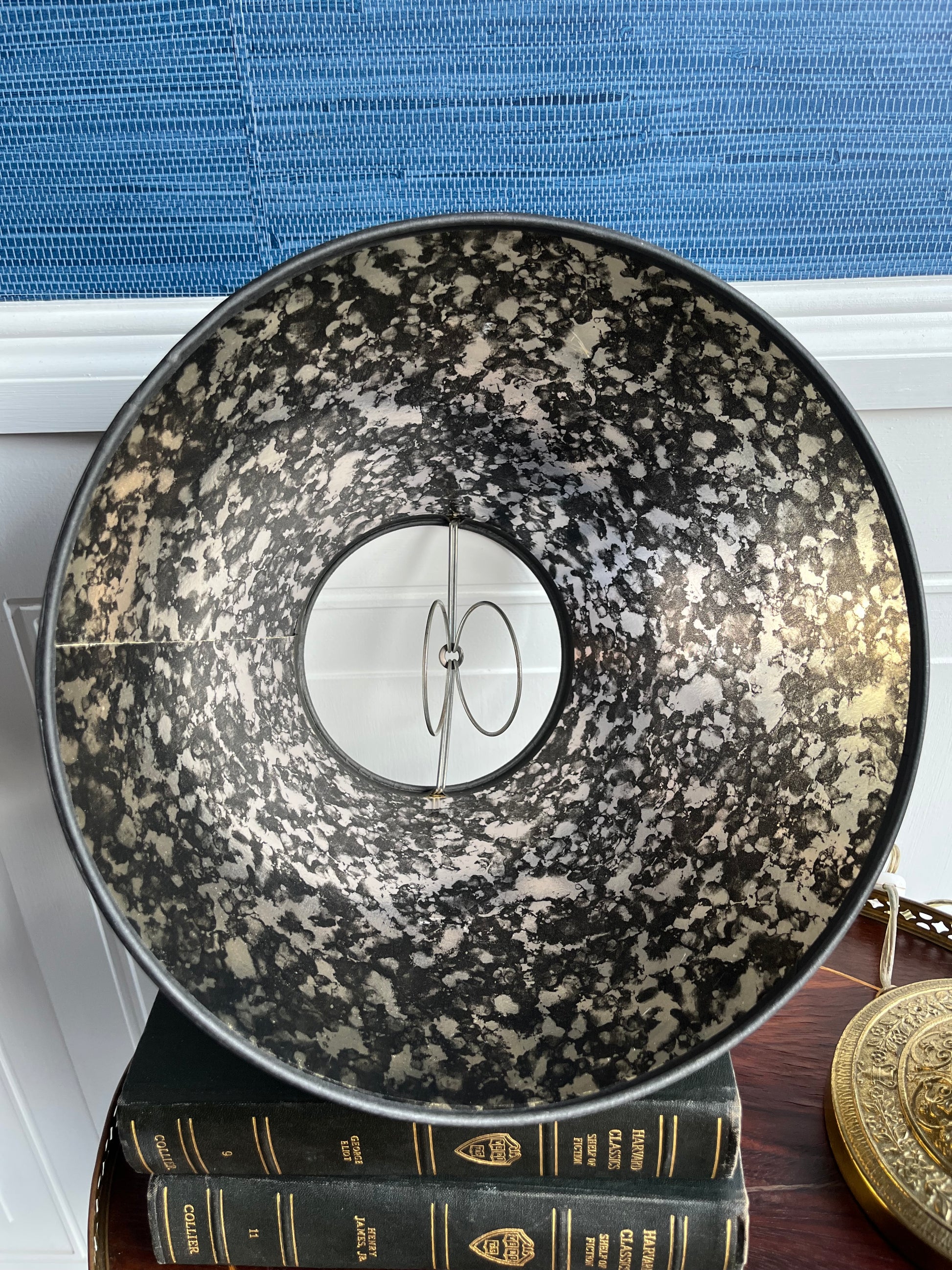 The black shade adds a tailored look, but what really makes it special is the inside: a marbled silver lining that softly reflects light for a cozy, layered glow. The shade attaches with a clip that fits right onto a standard bulb, keeping things simple and stylish.