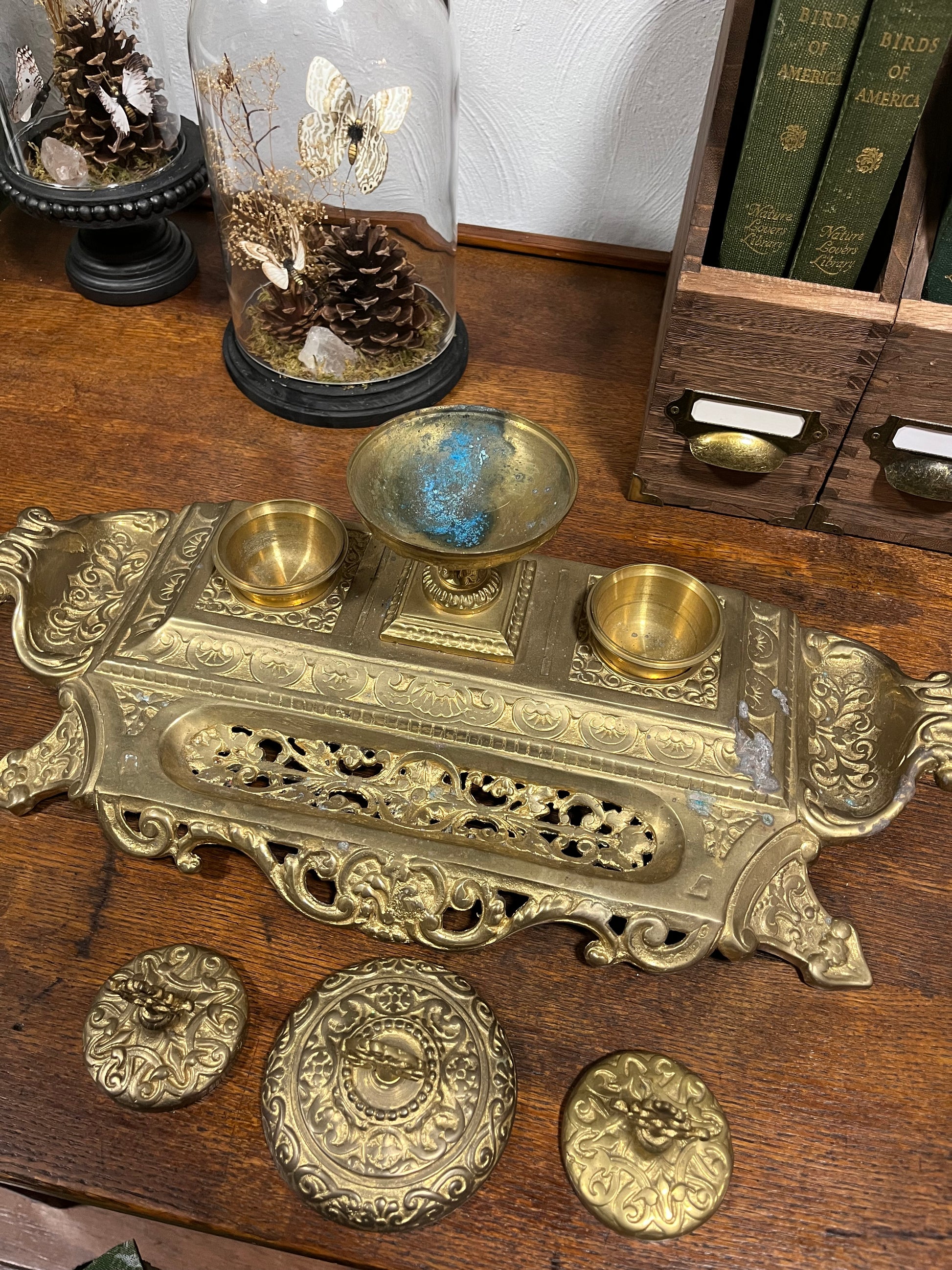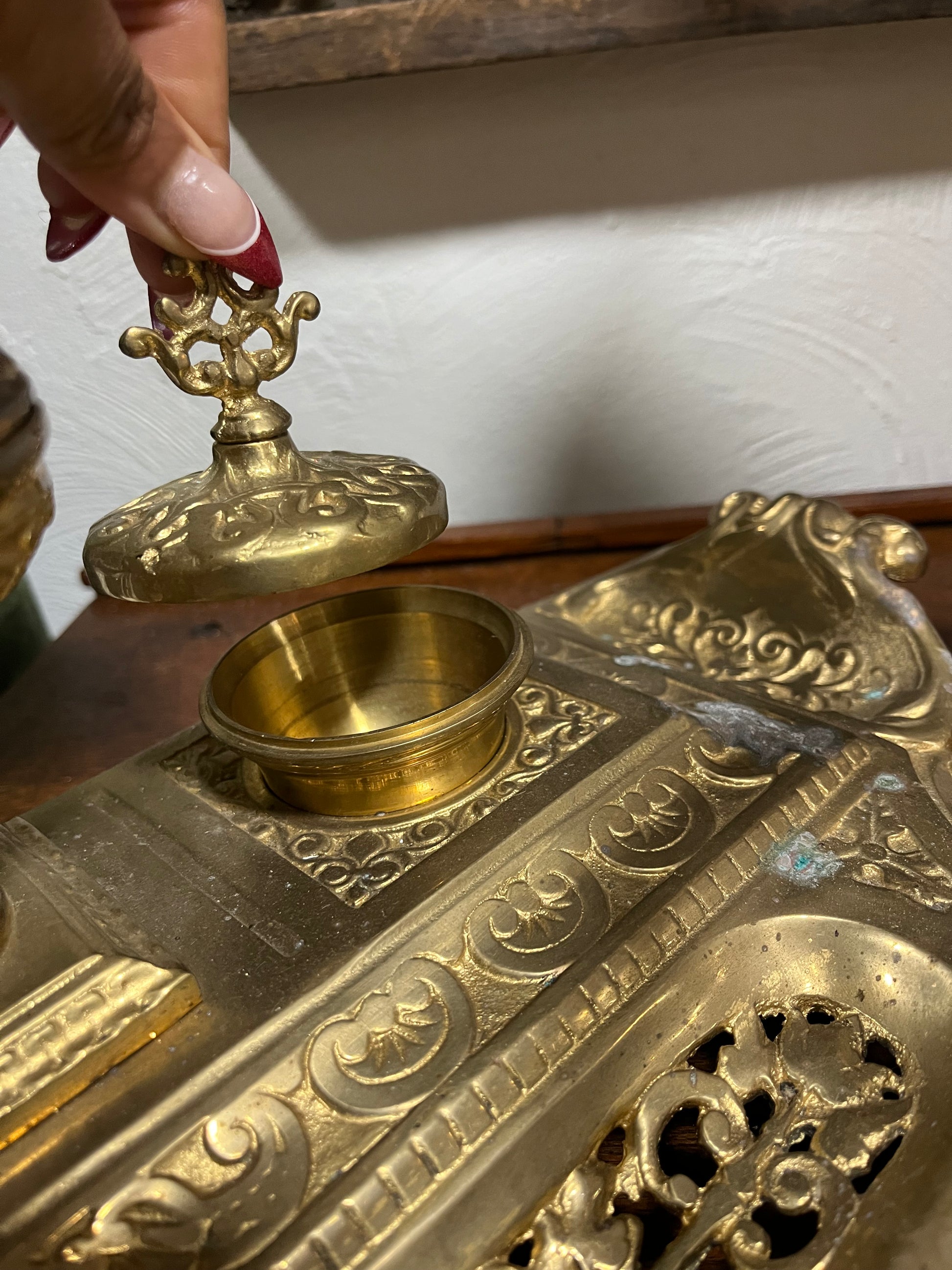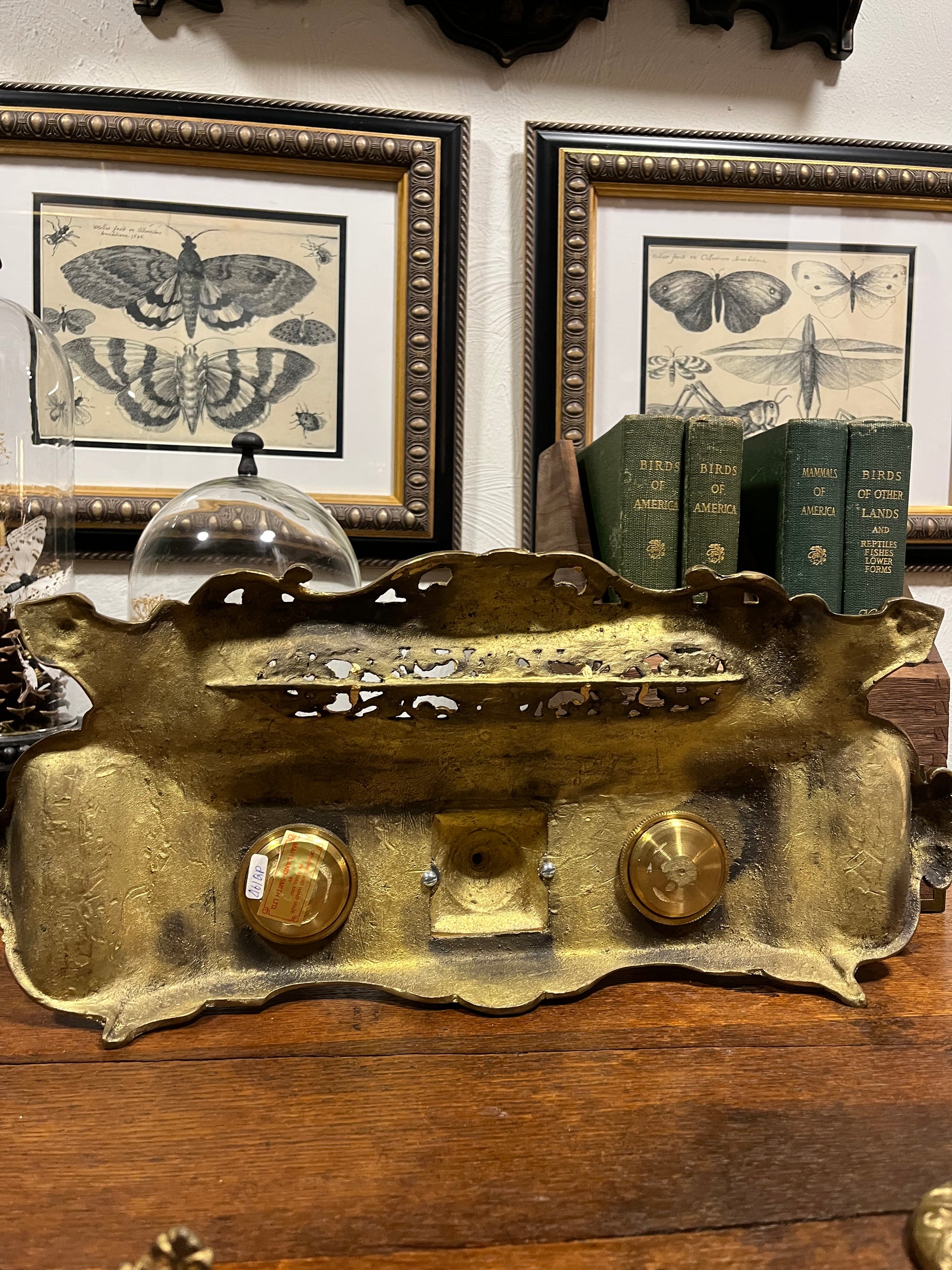 Vintage Maitland Smith Brass Ink Well Desk Set