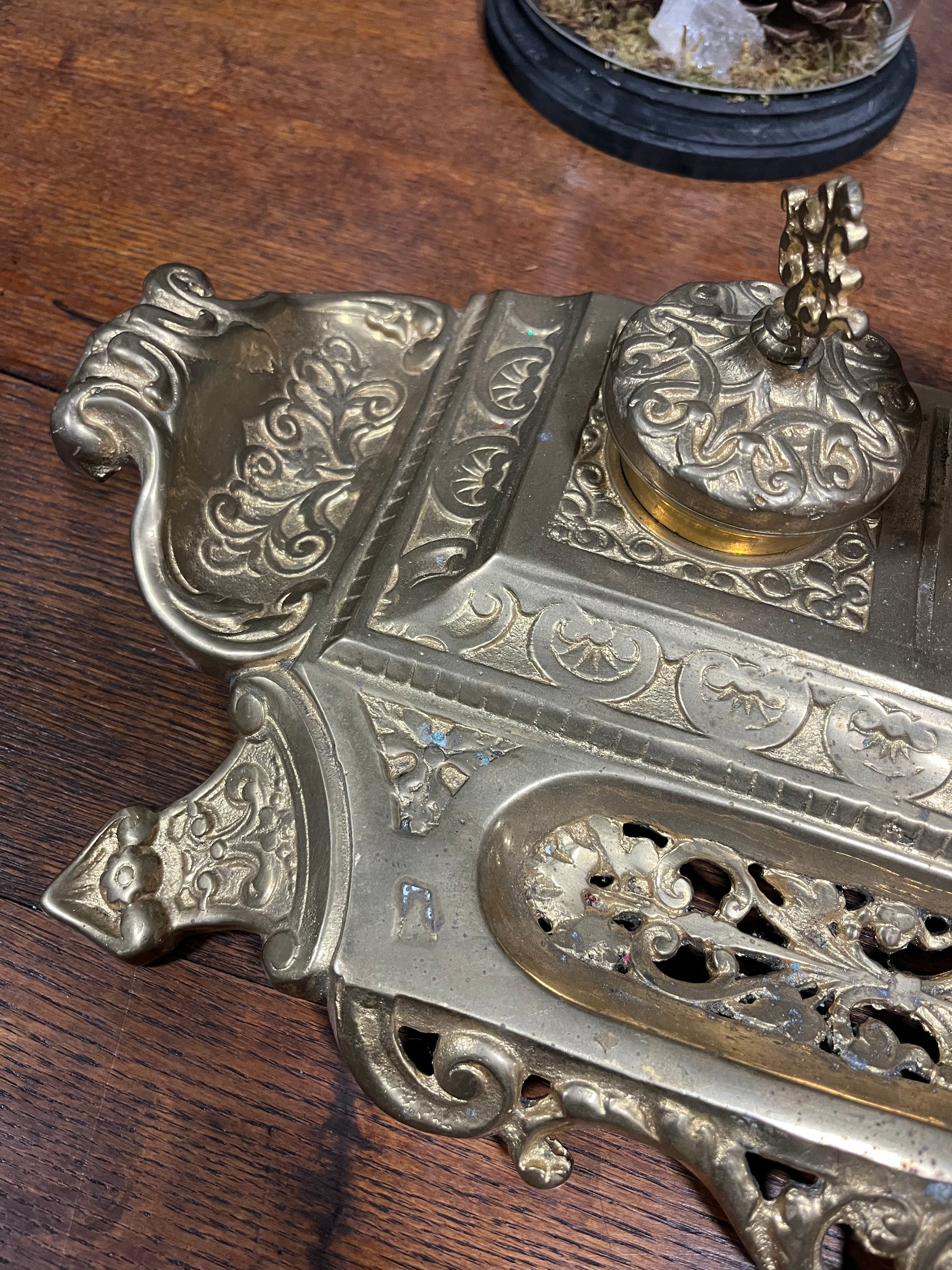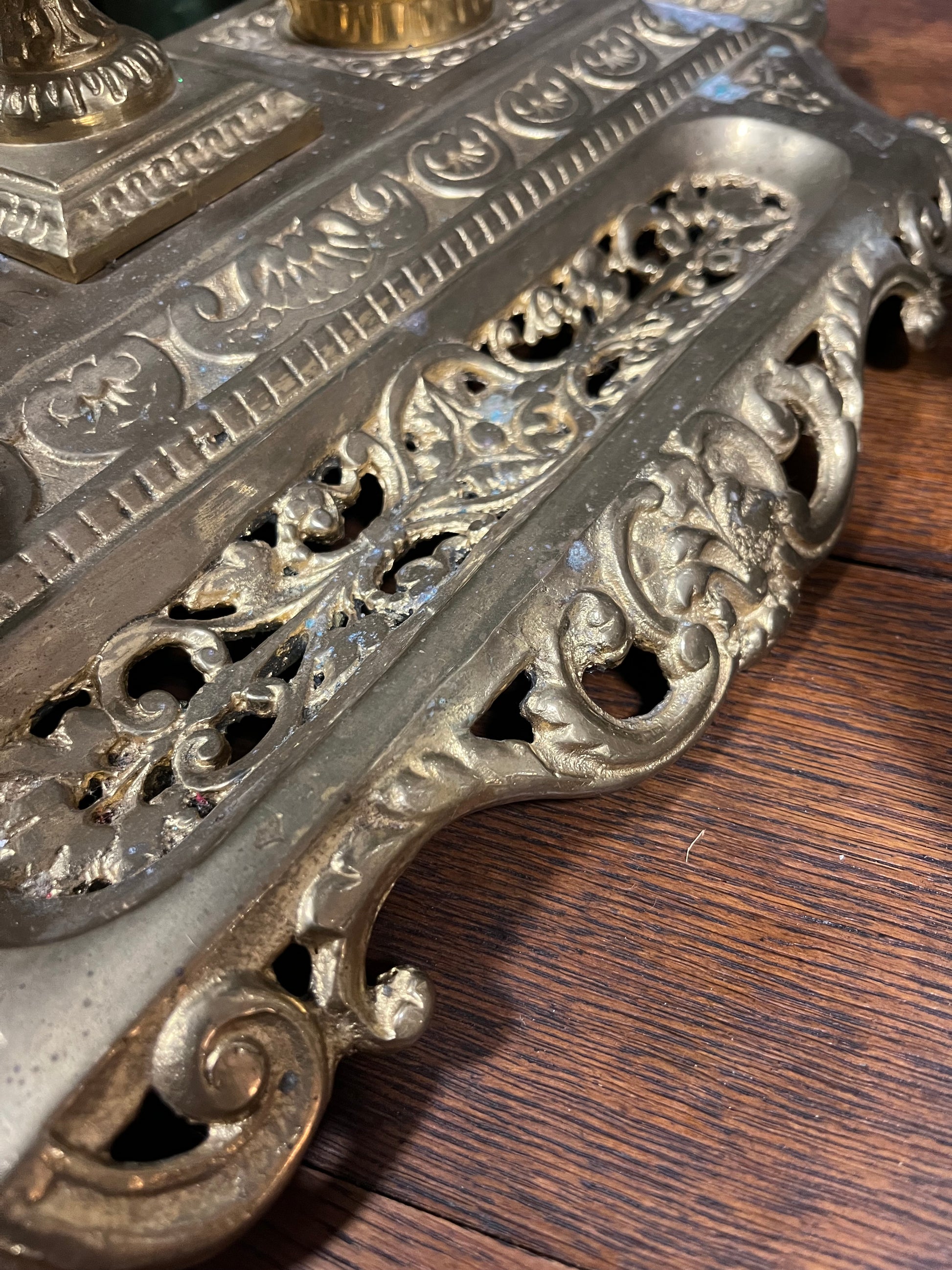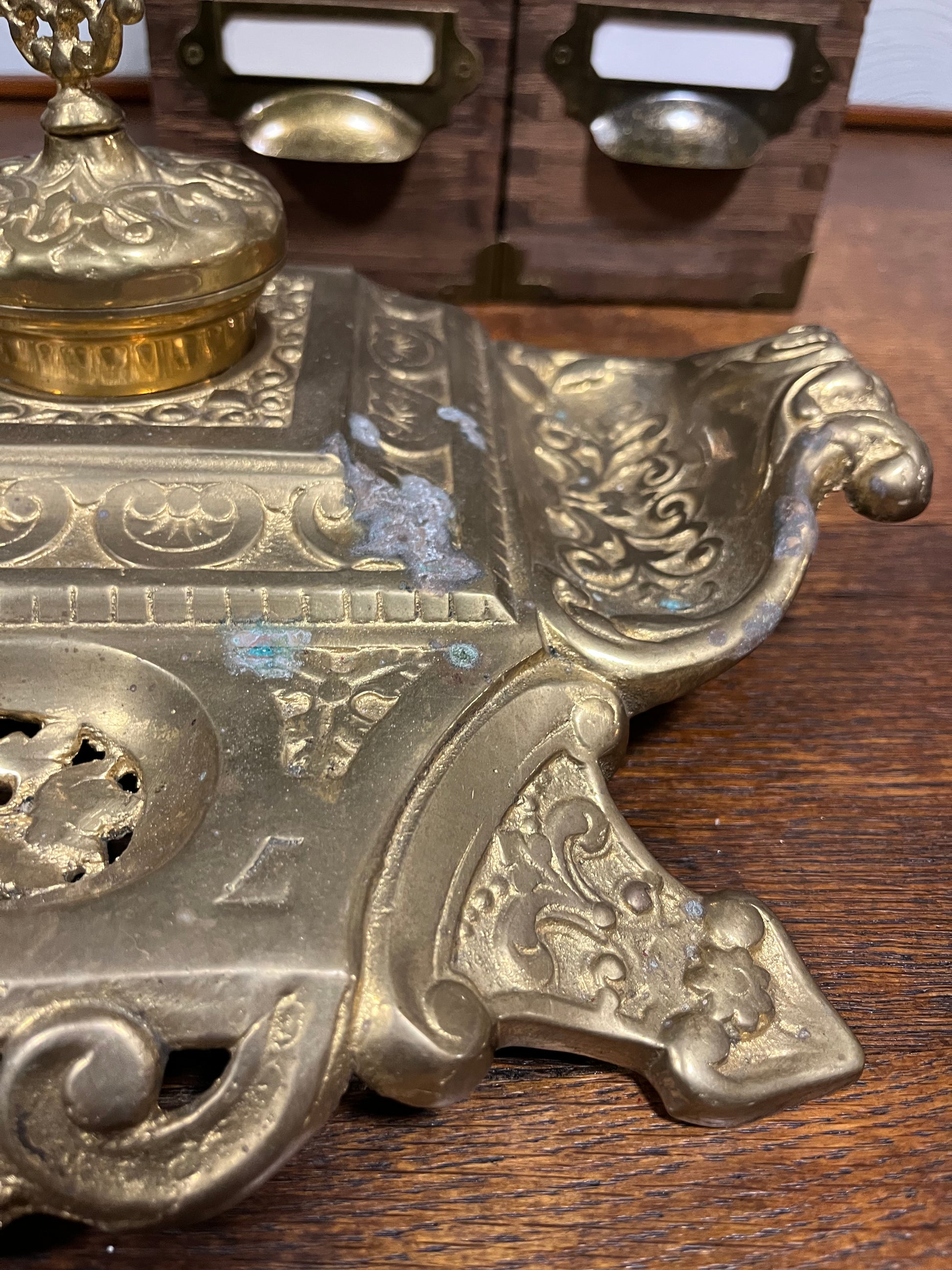 Vintage Maitland Smith Brass Ink Well Desk Set